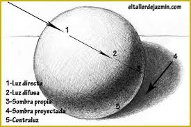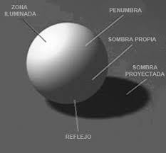 Vamos a analizar una forma simple para que lo entiendas con claridad. En una forma geométrica como la esfera se aprecian perfectamente las zonas de luz y sombra, observa la imagen: